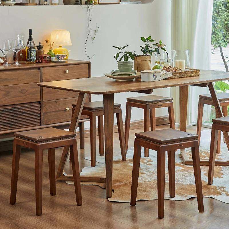 供应北欧全黑胡桃木餐桌餐桌椅圆形新中式小户型客厅实木饭桌
