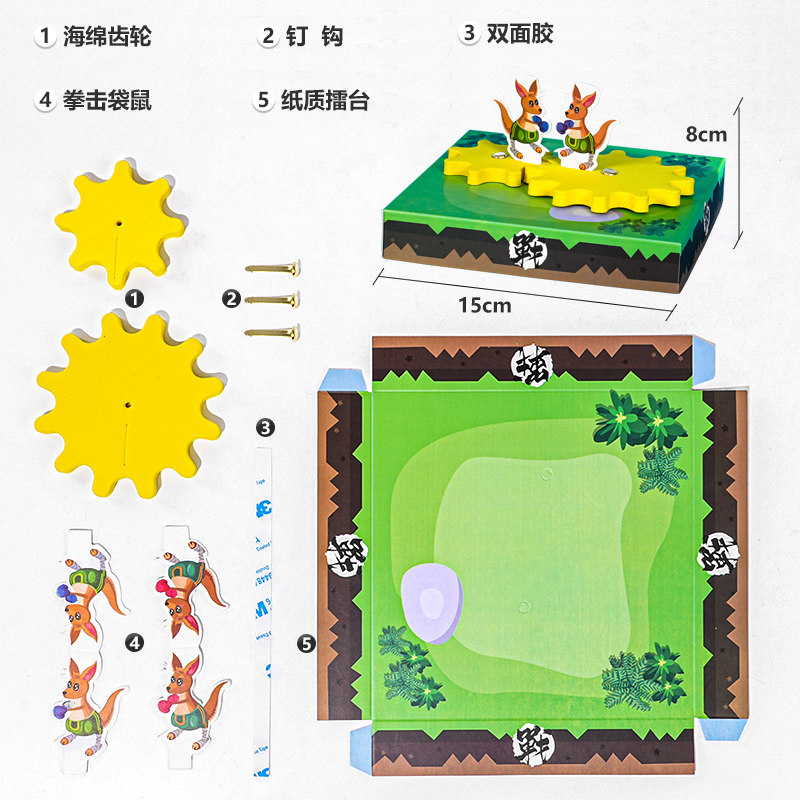 袋鼠比武擂台齿轮套装 科技小制作幼儿园DIY手工益智兴趣教具推荐