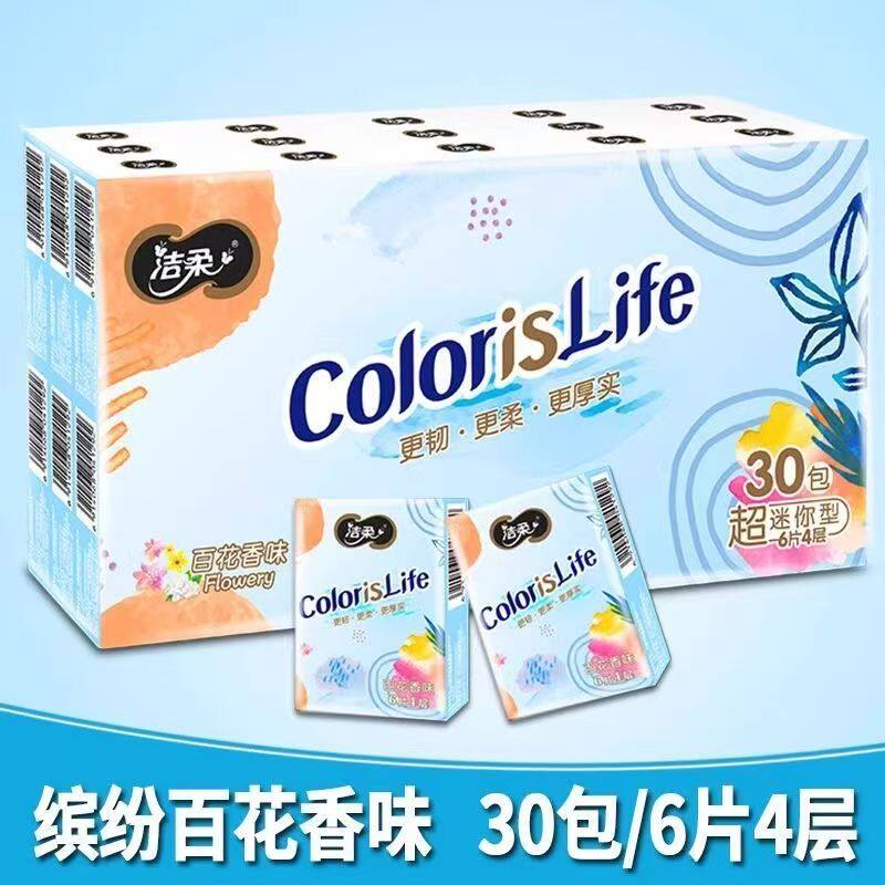 洁柔手帕纸缤纷4层百花香味小包纸巾随身装学生旅行便携卫生纸巾