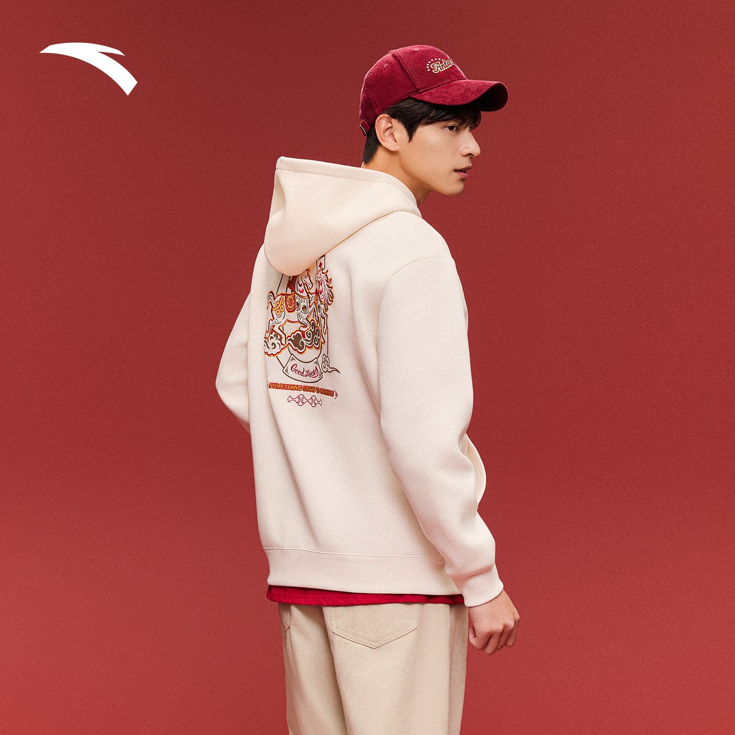 安踏好事发生丨鸿运套头卫衣男士春季连帽长袖运动上衣152618731