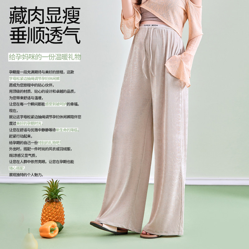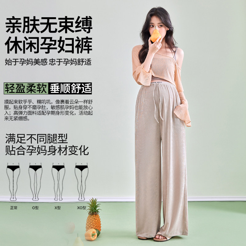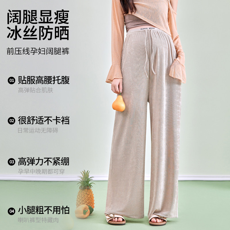 婧麒孕妇冰丝阔腿裤夏薄款无托腹不勒肚子休闲裤2026新款孕妇春装