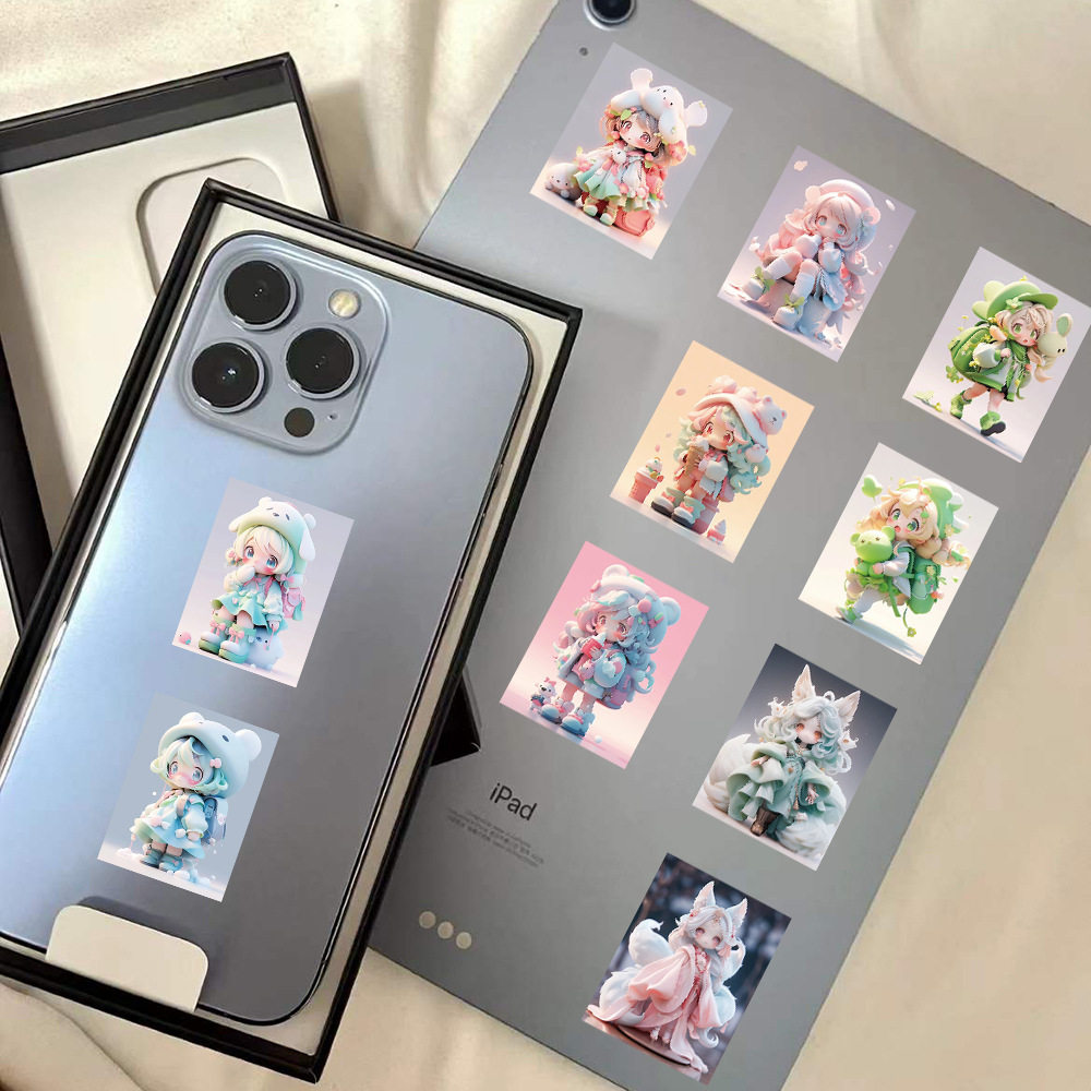 60张崽崽卡通贴纸少女心洋娃娃装饰水杯行李箱手机壳素材贴画
