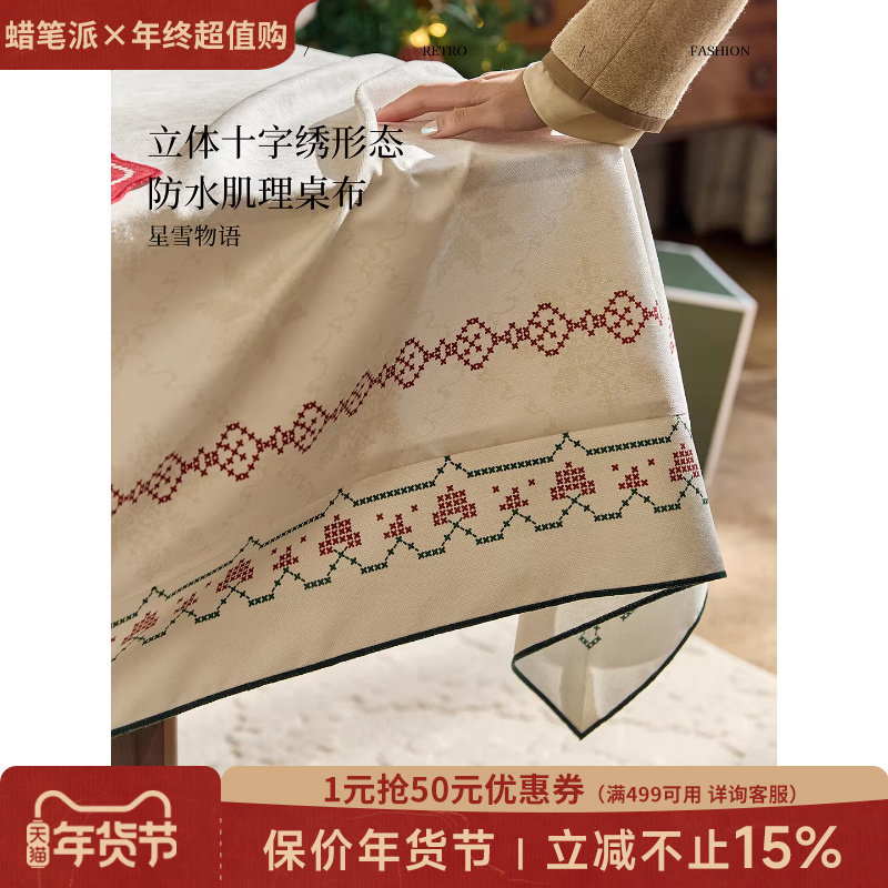 蜡笔派星雪物语桌布简约现代防水餐桌盖布新款轻奢新年节日茶几布