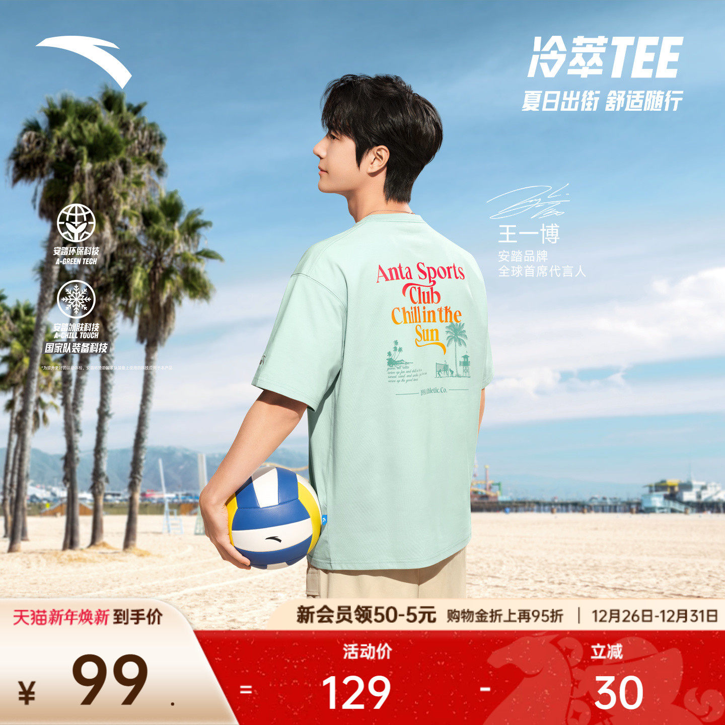 安踏休闲短袖t恤男装夏季新款宽松透气潮流印花冰丝上衣152538121
