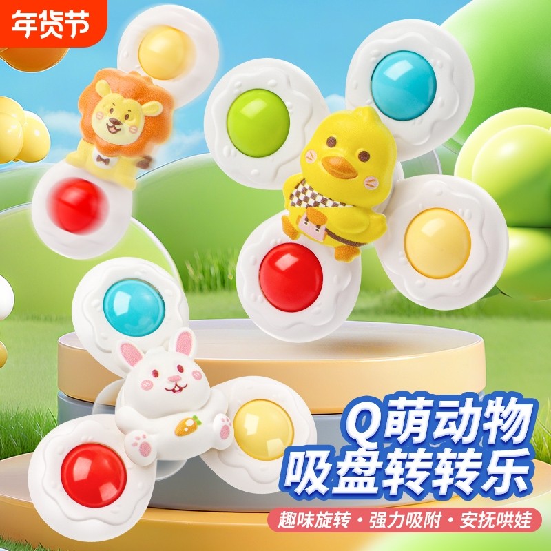 婴儿吸盘转转乐宝宝玩具儿童卡通餐桌洗澡车载手指旋转0-1岁6个月