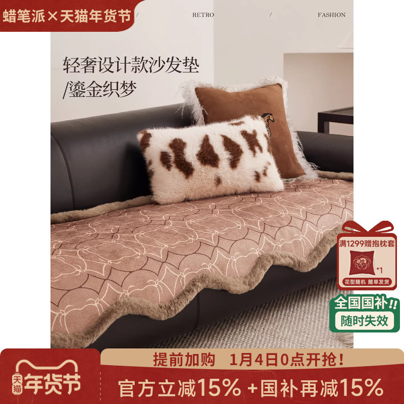 蜡笔派「马上有福」鎏金织梦异形沙发垫2025新款节日冬季客厅坐垫