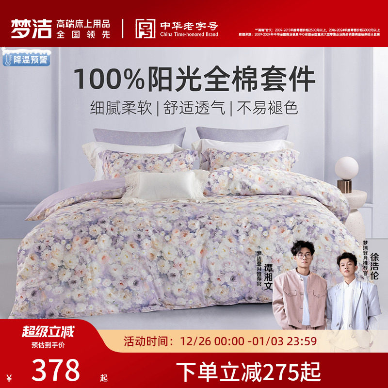 梦洁家纺床上四件套床单纯棉全棉2025新款被套大学生宿舍被罩床品
