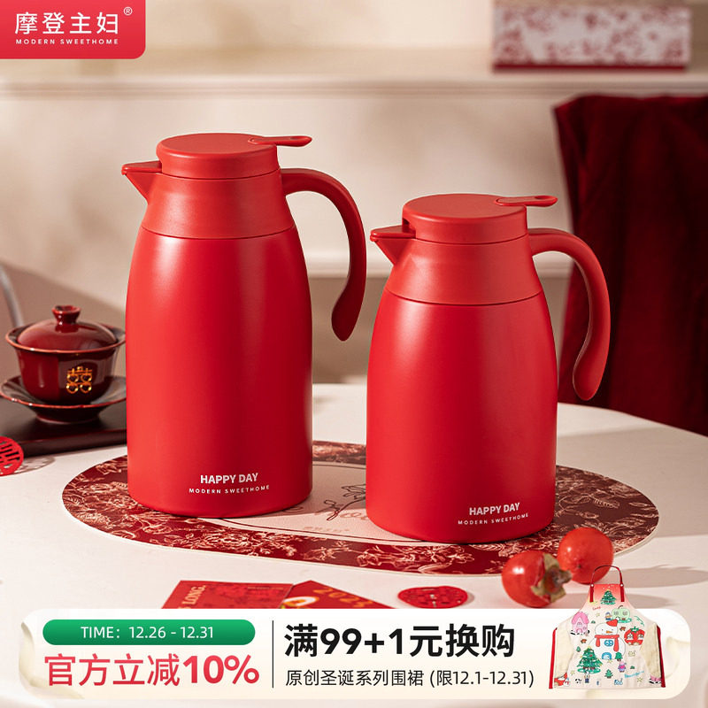 摩登主妇红色保温壶陪嫁结婚一对新婚马年新年本命年礼物女热水壶
