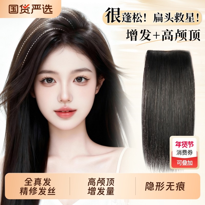 真发假发片女头顶垫发一片式隐形无痕两侧垫高增厚蓬松垫发根贴片