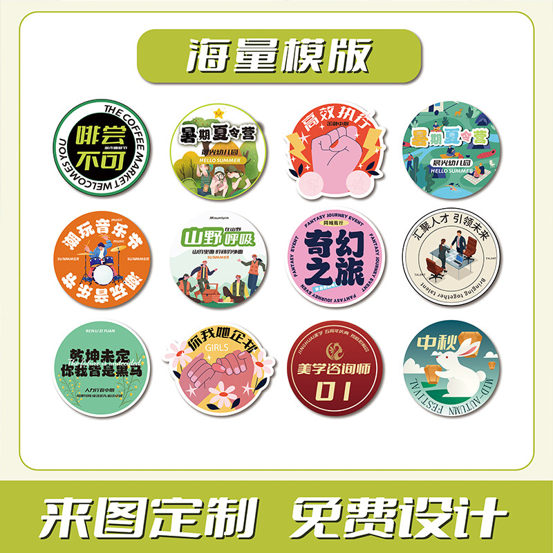 活动手臂贴纸定制团建比赛号码牌公司年会议签到衣服圆形分组数字logo设计名牌防水胸贴游戏团队标签不干胶