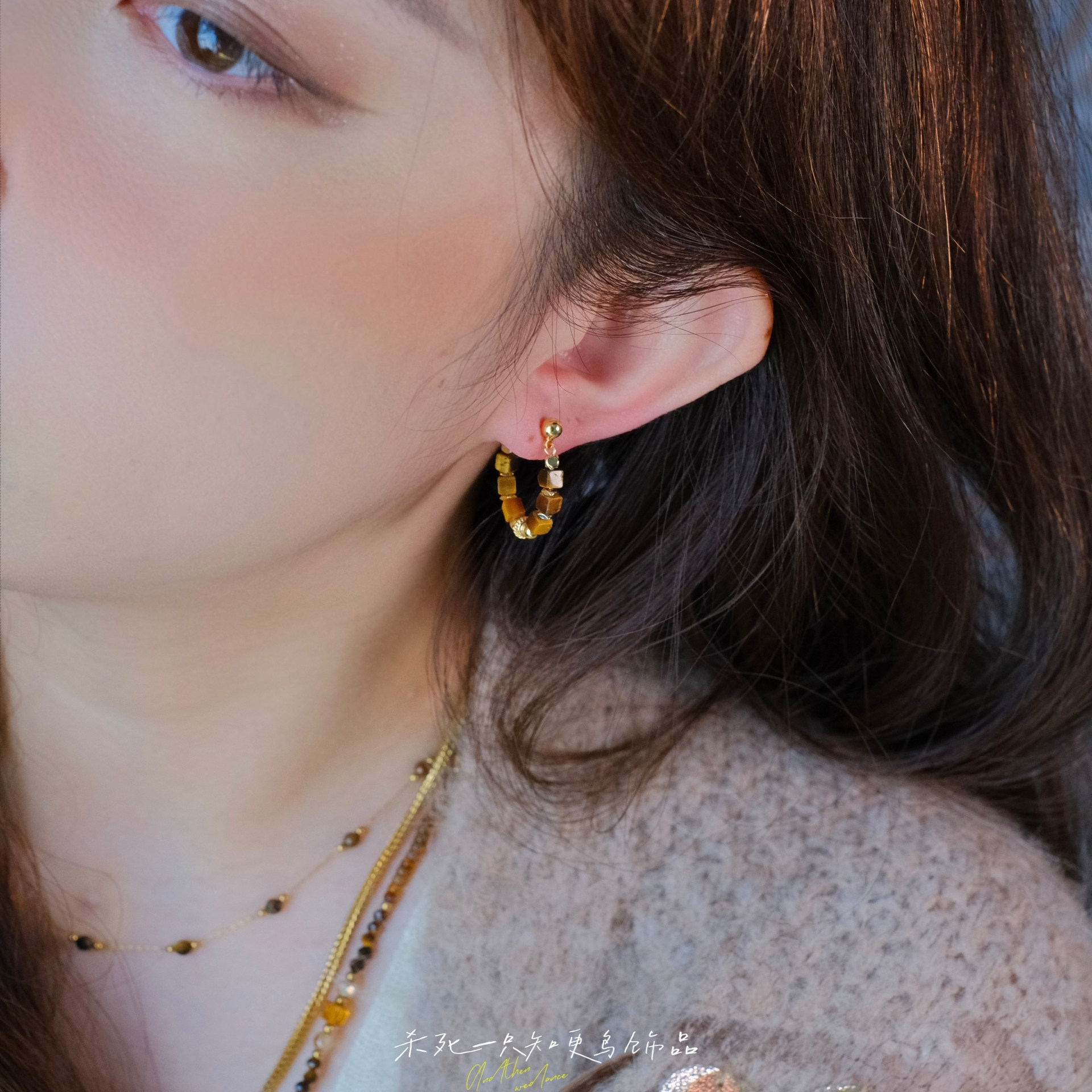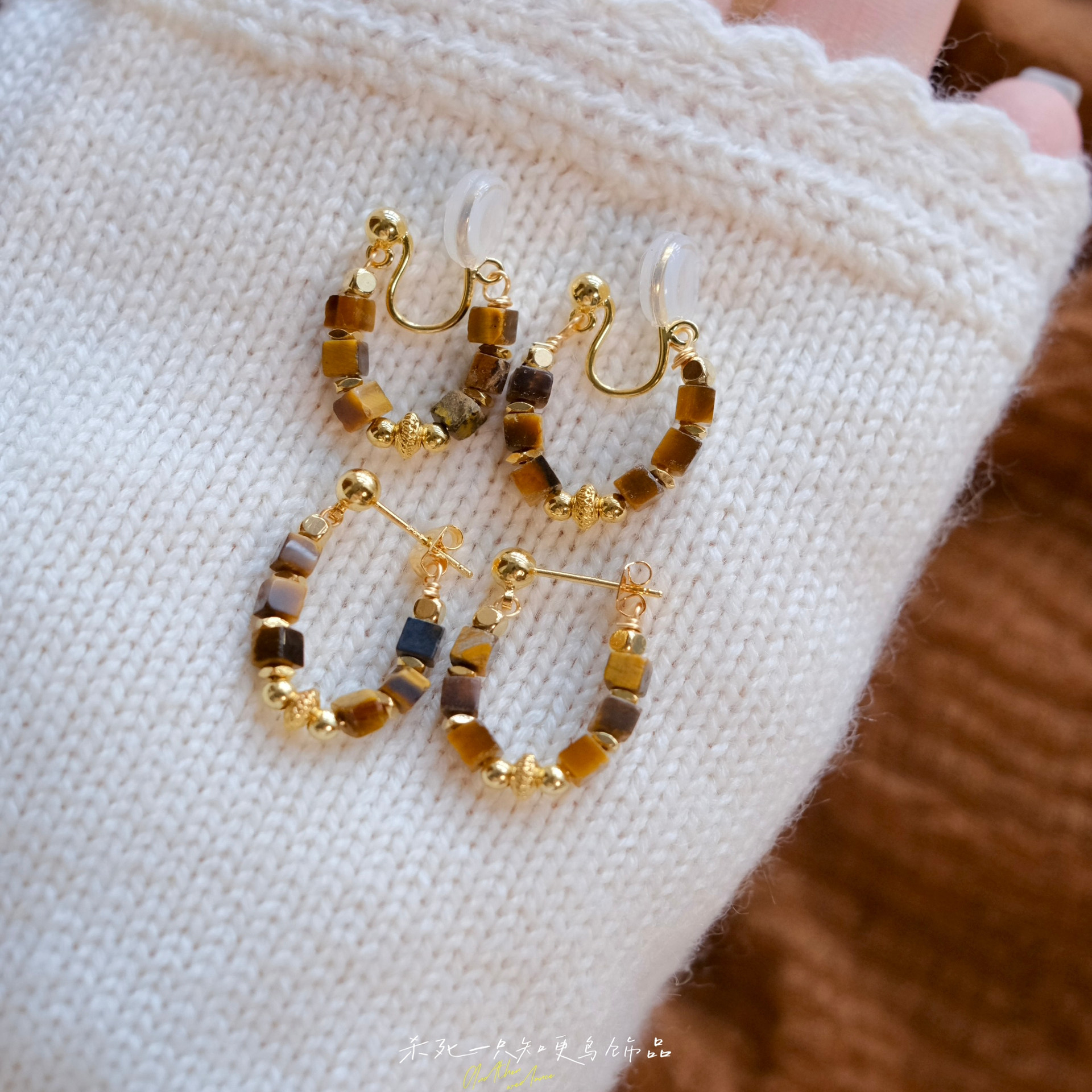 《旷野之尘》秋冬美拉德咖色天然石虎睛石串珠耳圈耳环耳夹无耳洞