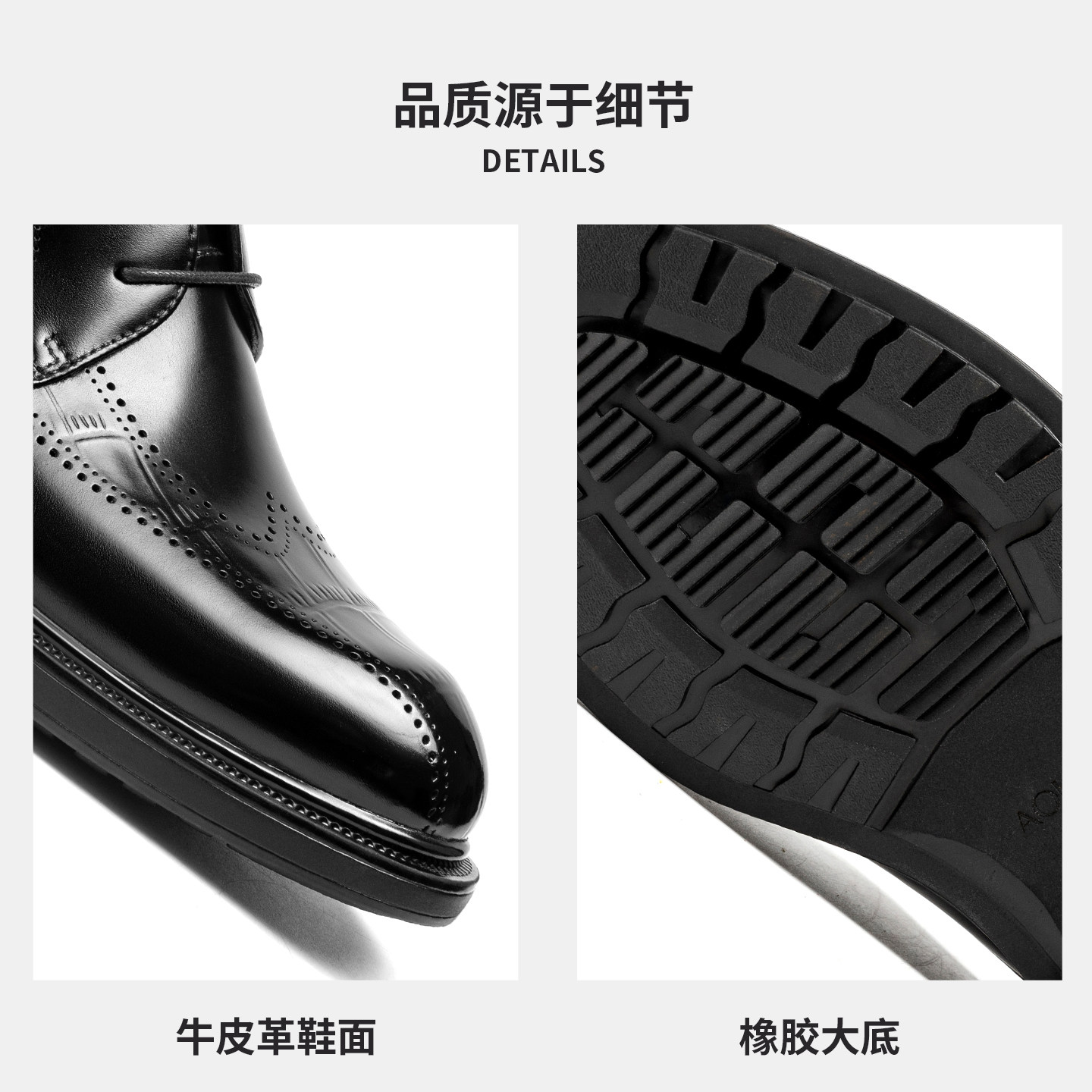 海澜之家男鞋秋冬季正装商务真皮布洛克内增高皮鞋男款加绒德比鞋