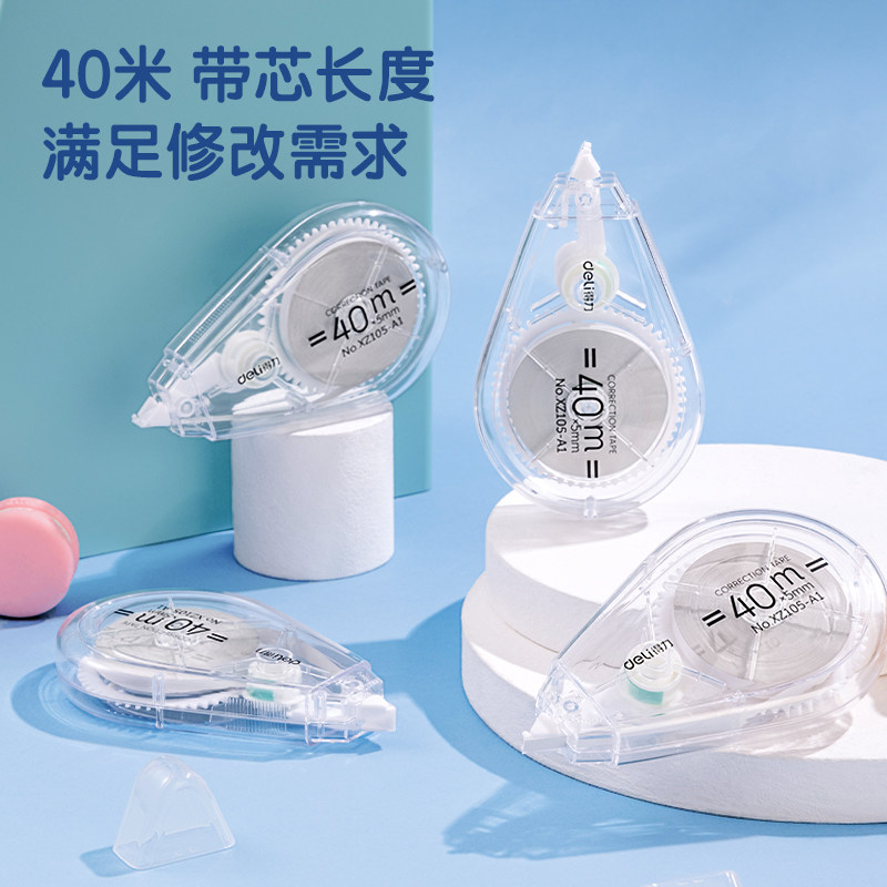 得力静音修正带大容量小学生初中生专用透明涂改带无痕改正带便携多功能创意去字改错带错题纠错改字带修改带