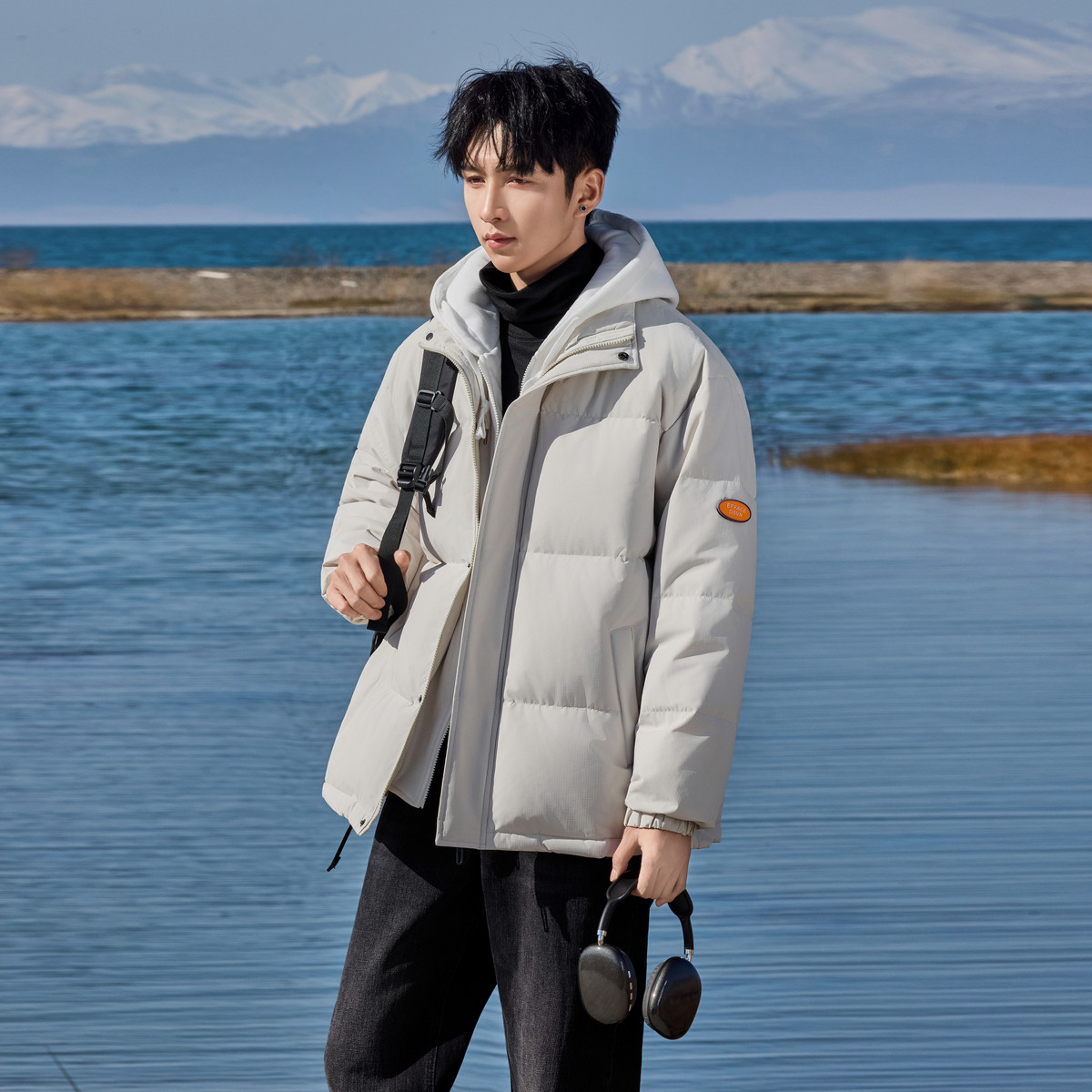 鸭鸭轻薄羽绒服男士2025年秋冬反季短款保暖休闲时尚连帽鸭绒外套