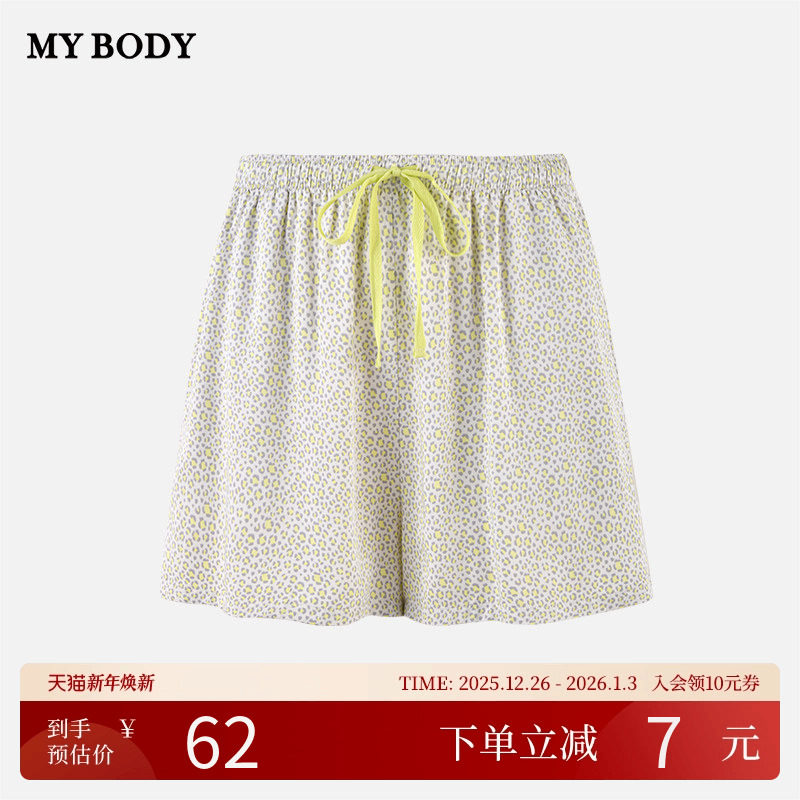 商场同款MYBODY2025秋季薄款时尚印花短裤可外穿宽松居家女睡裤