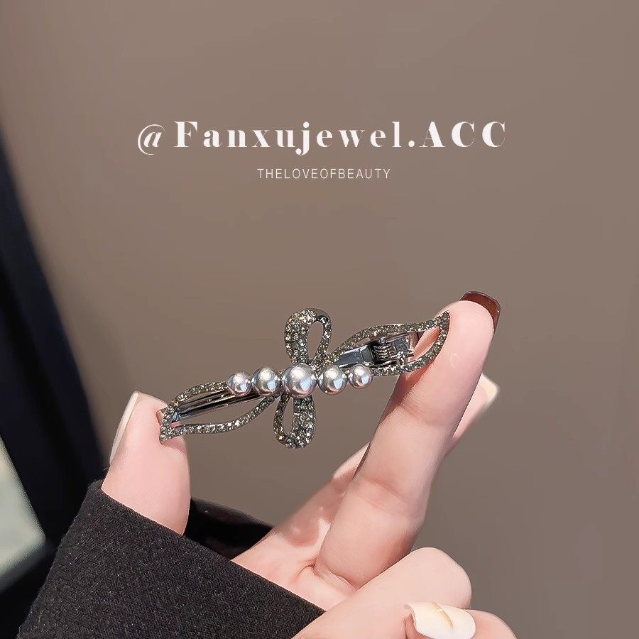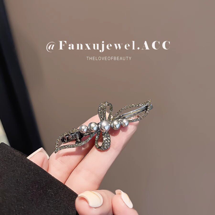 高级感水钻珍珠发夹女新款刘海侧边夹前额碎发夹子新中式发卡头饰