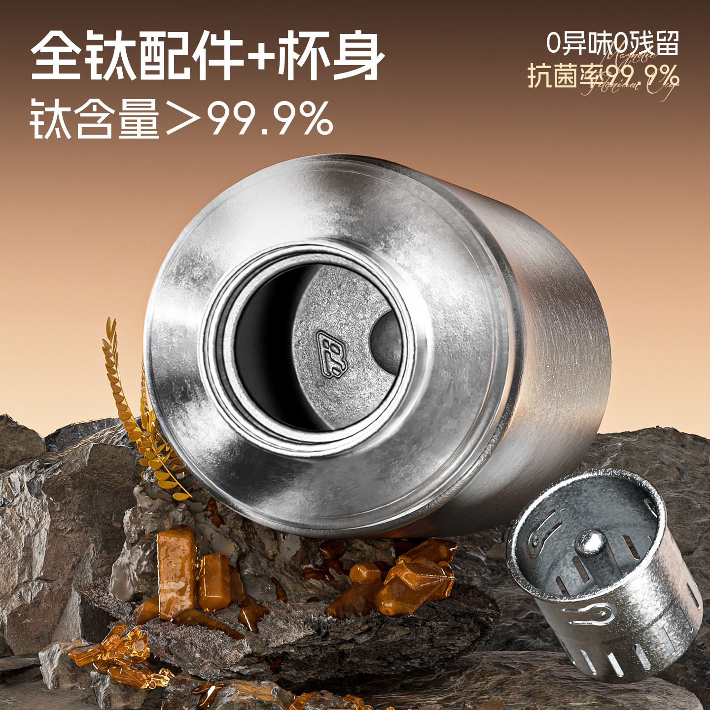hoomey磁吸钛杯纯钛保温杯沏茶泡茶焖杯26水杯高颜值礼物高端杯子