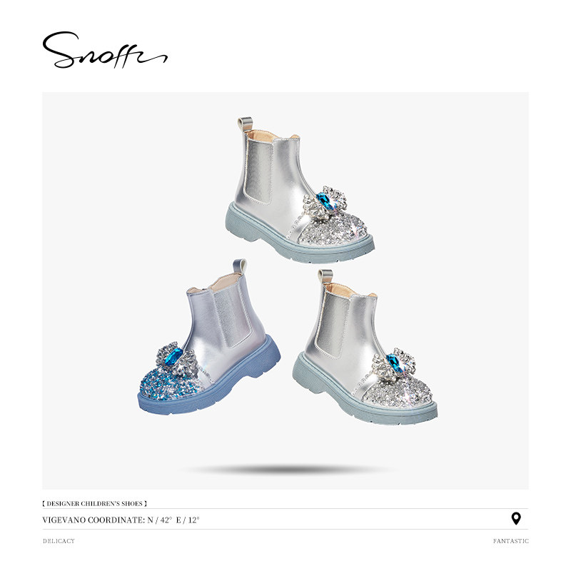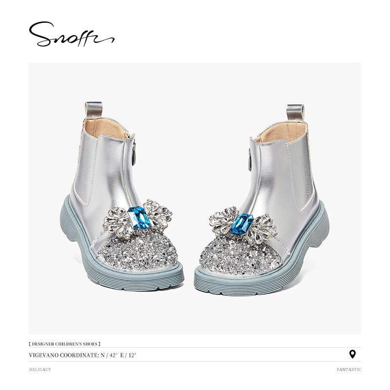 斯纳菲儿童靴子女童水晶鞋爱莎公主短靴小女孩2025年秋冬新款皮靴