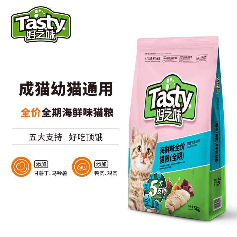 好之味海鲜味鸡肉鱼油搭配小麦玉米全价全期成猫幼猫粮5kg全年龄