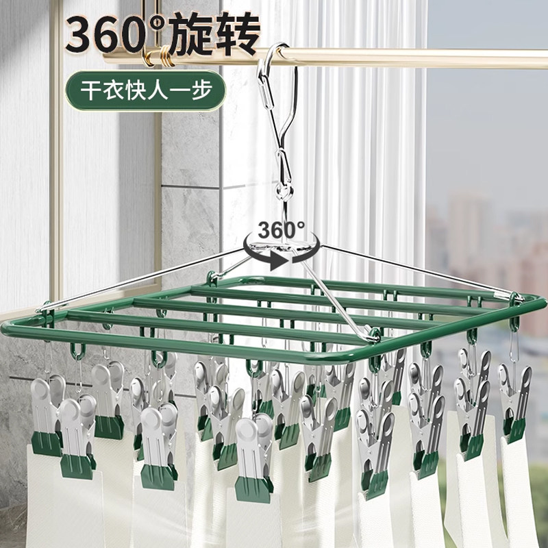不锈钢家用多夹子晾衣架挂晒袜子架功能婴儿宝宝神器凉晒内衣内裤