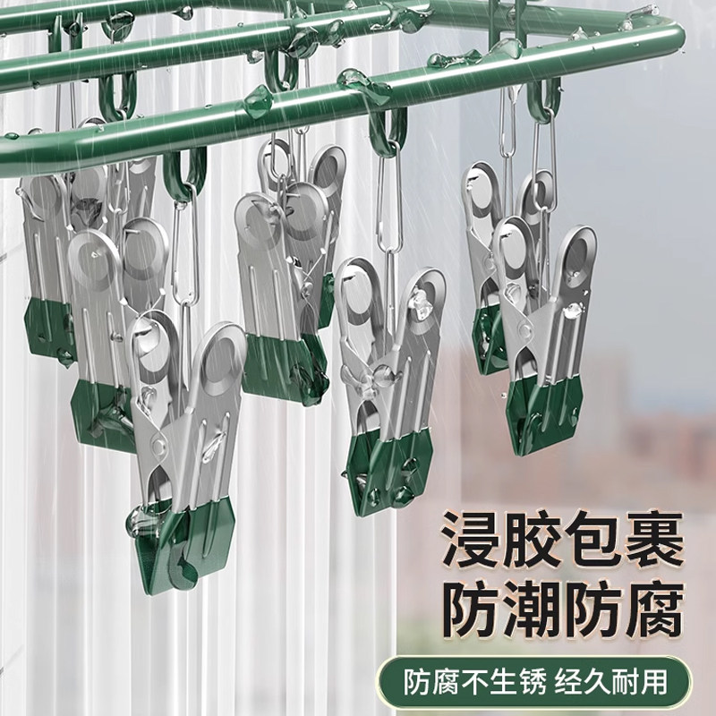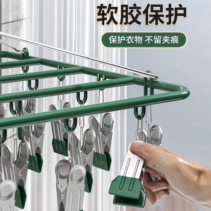 特粗晾袜子衣架多夹子防风家用不锈钢晾衣夹多功能挂钩晒袜子神器