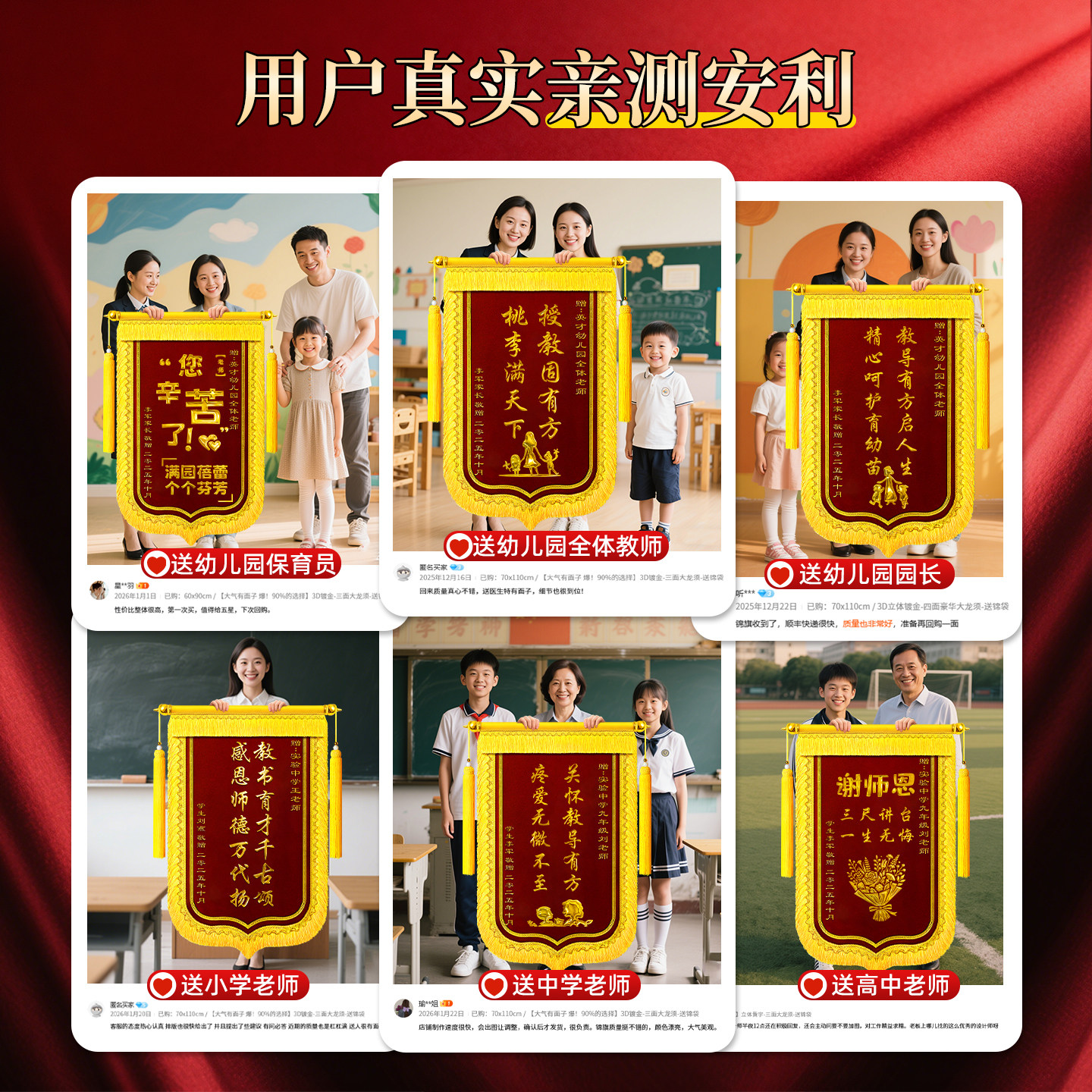 锦旗定制定做感谢医生送老师旌旗制作订做送给幼儿园园长中小学校班主任护士医护人员教师节礼物月嫂物业装修