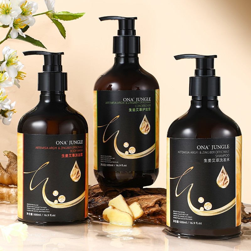 生姜艾草洗发水护发素沐浴露控油蓬松洗发露洗护套装正品养发三件