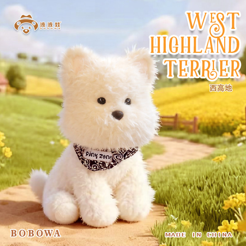 波波娃正版西高地小狗狗玩偶毛绒玩具安抚娃娃公仔儿童女圣诞礼物