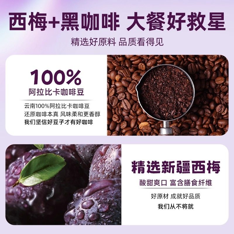 西梅黑咖啡无糖0脂减燃肥脂提高代谢暴美式速溶瘦加强官方旗舰店