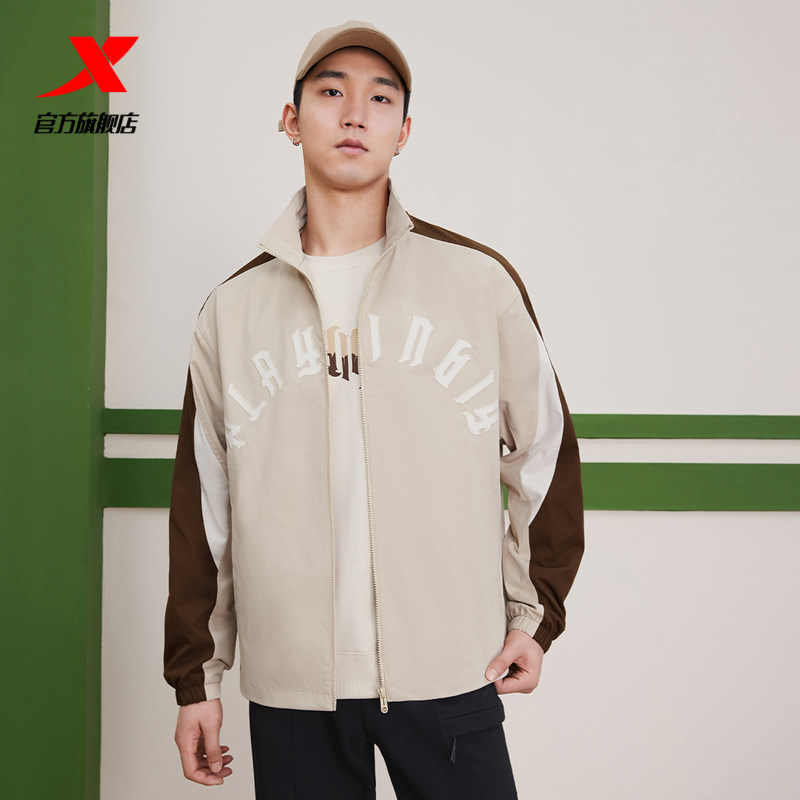 特步双层风衣男2025秋冬新款百搭篮球梭织男运动上衣976129150138