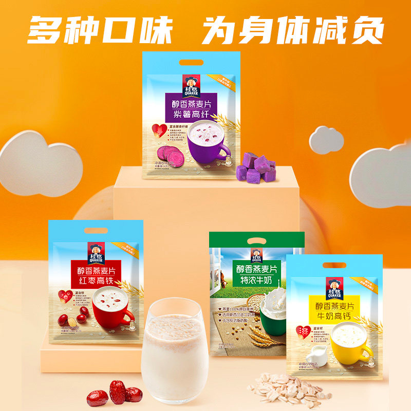桂格燕麦片特浓牛奶红枣醇香540g*2袋装速食冲饮营养燕麦
