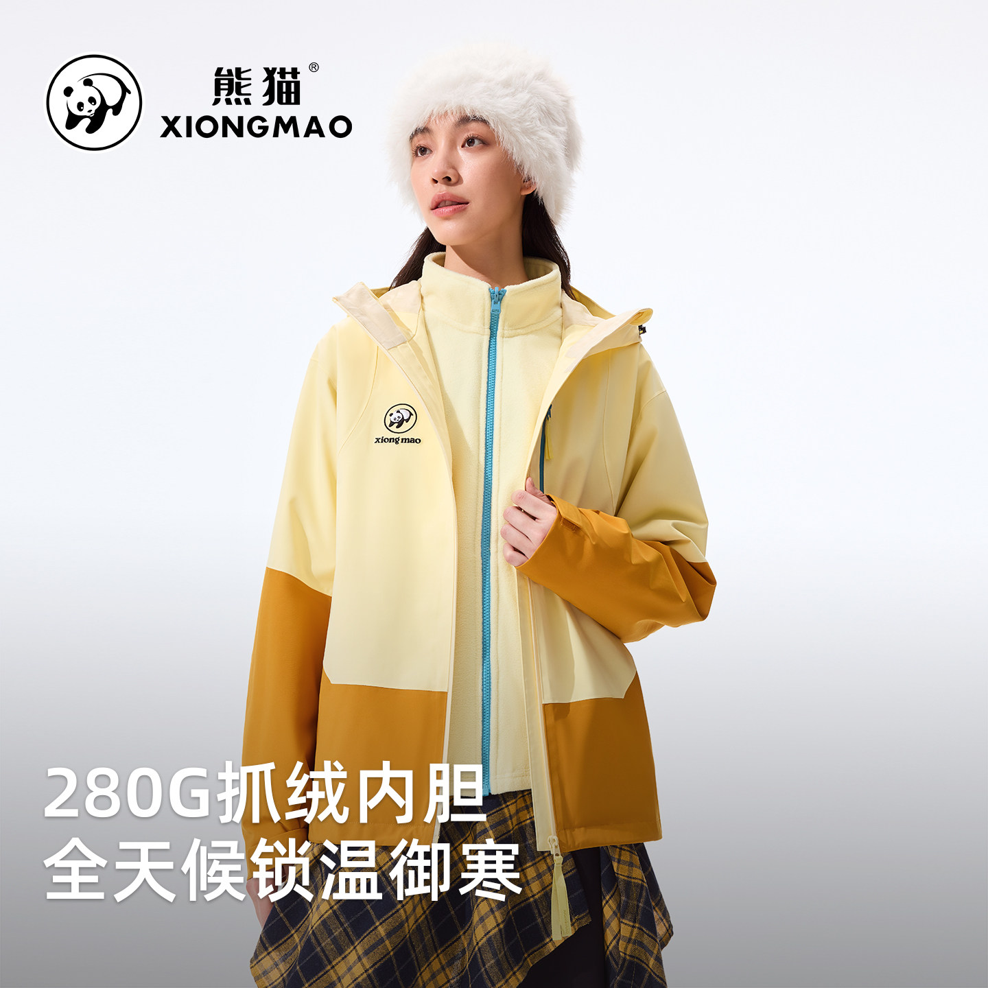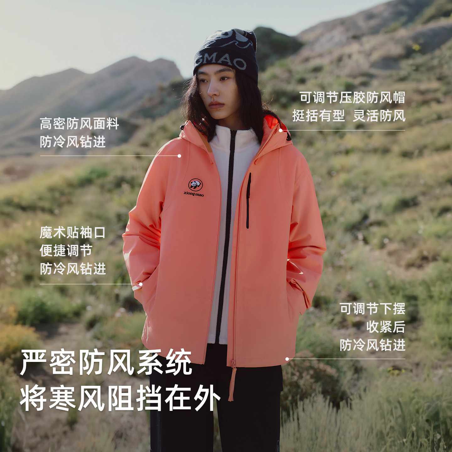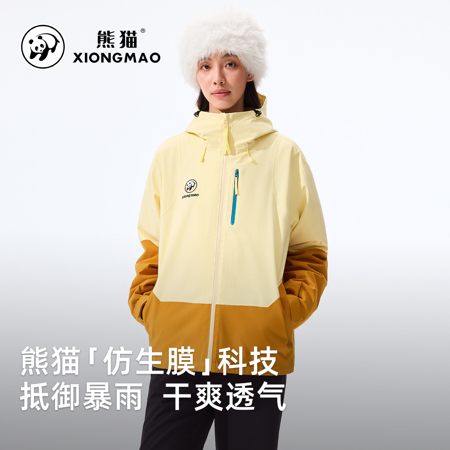 熊猫户外三合一冲锋衣2025新款防风防水透气保暖徒步登山骑行服