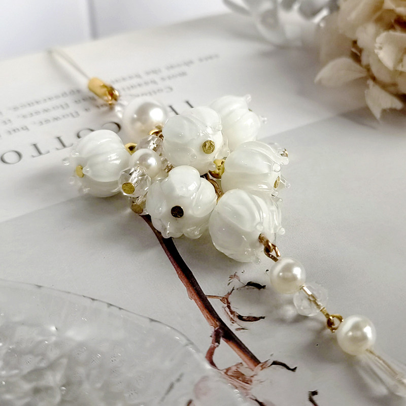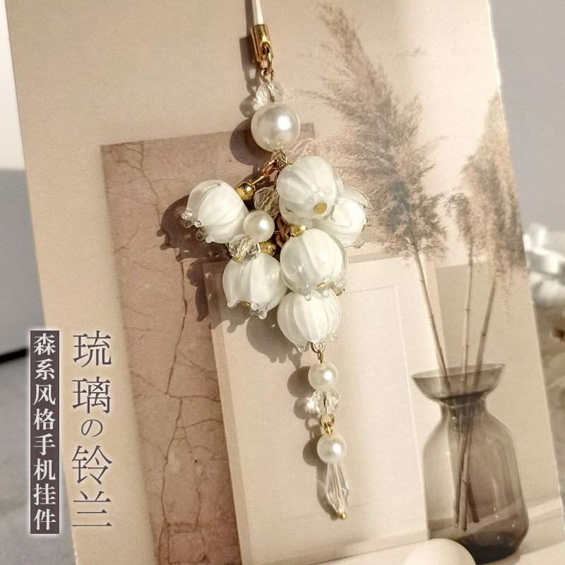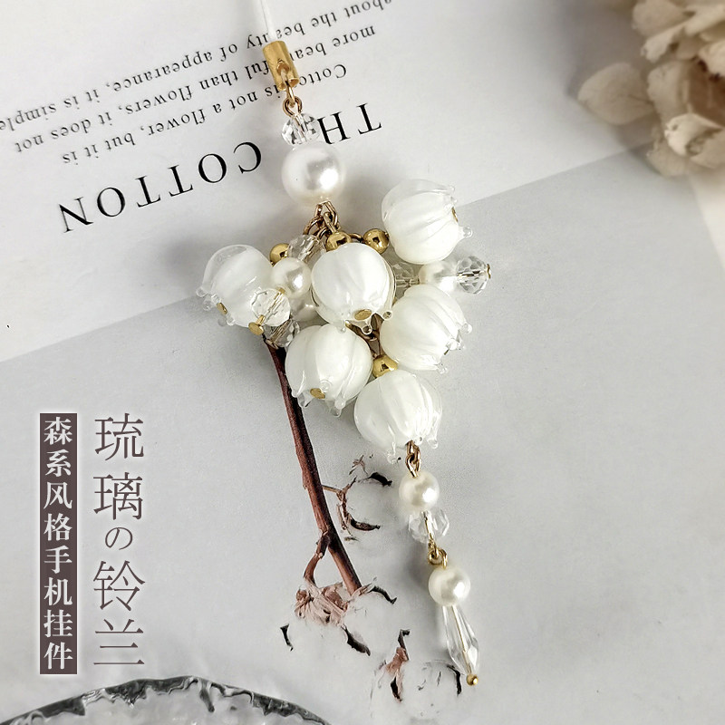 森系铃兰手机挂件水晶挂绳配饰手工diy琉璃花朵小吊坠流苏饰品女