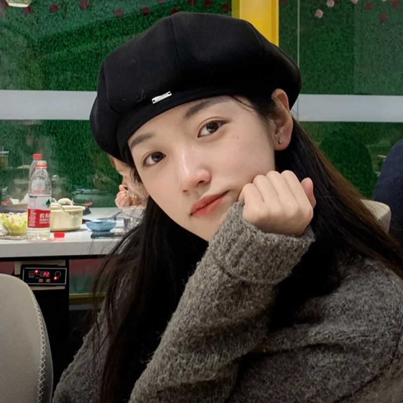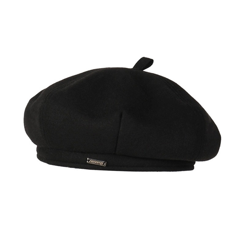 黑色贝雷帽女2025新款韩系毛呢网红八角帽大头围春秋画家帽子白色