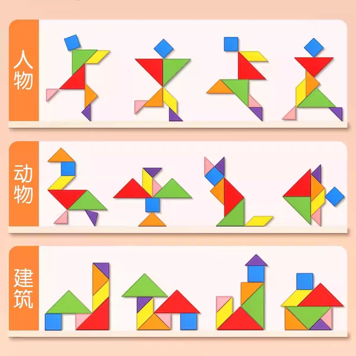 七巧板小学生专用一年级木质数学教具二年级智力拼图益智玩具图形