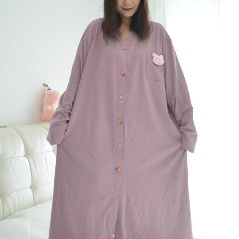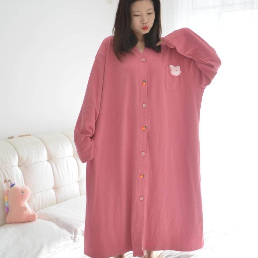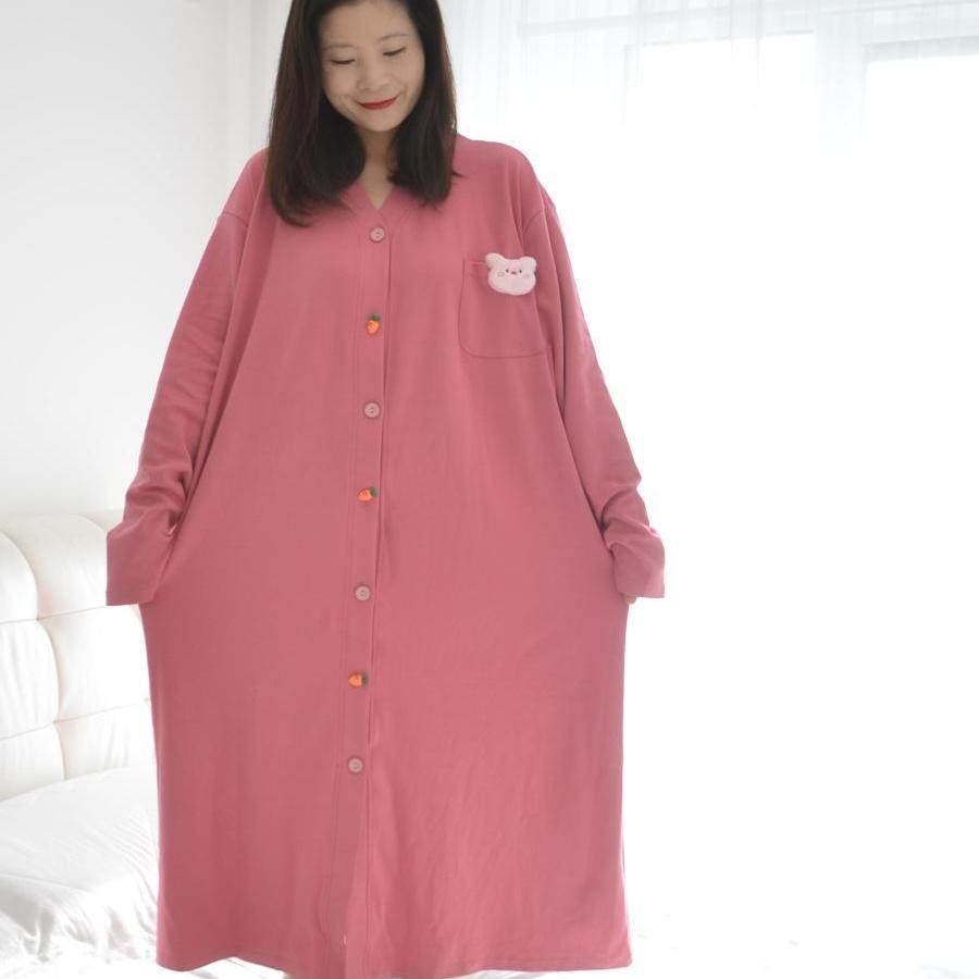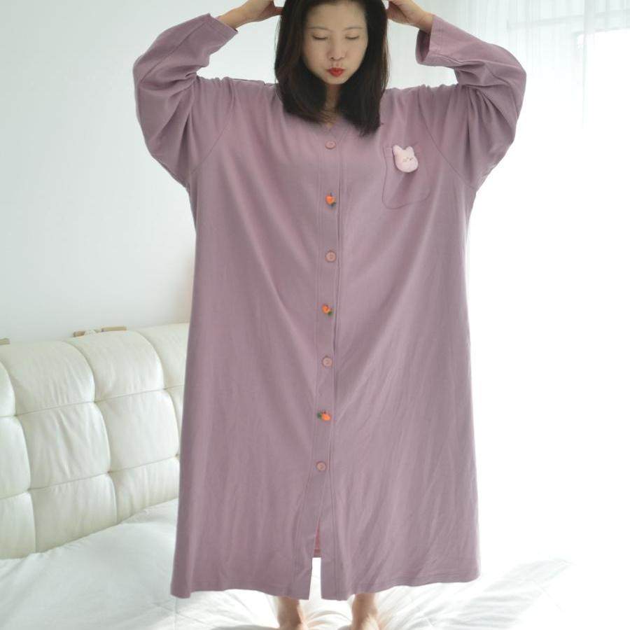 300斤加大码超长款睡裙女胖MM春秋加厚纯棉长袖开衫卡通孕妇睡衣