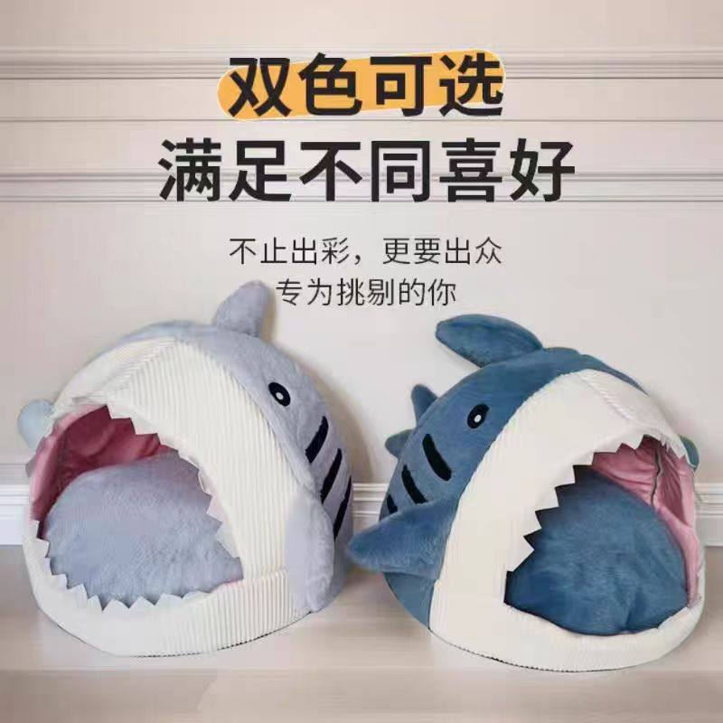 卡通猫窝宠物用品封闭四季通用狗窝卡通鲨鱼造型宠物窝