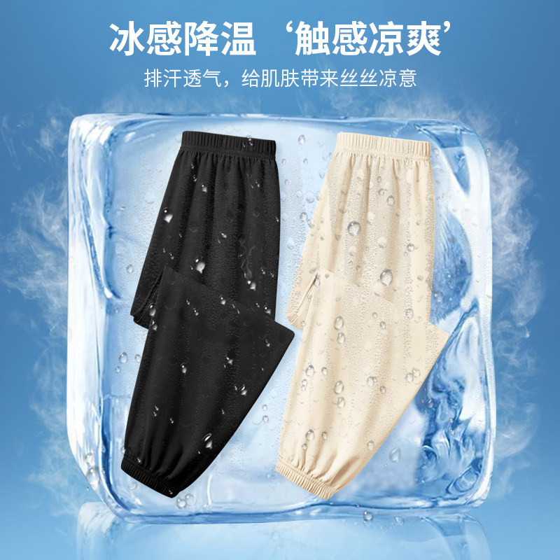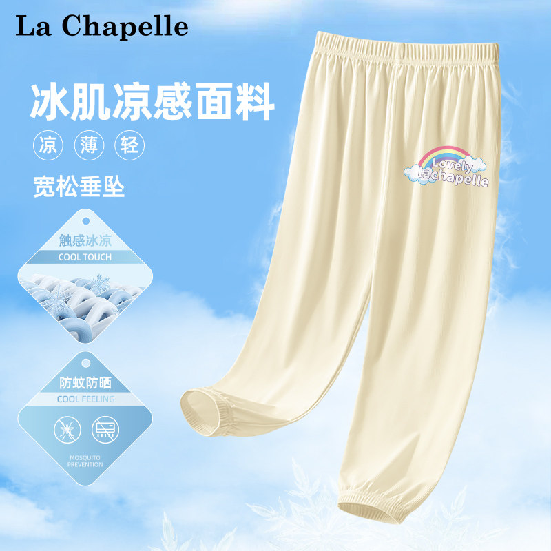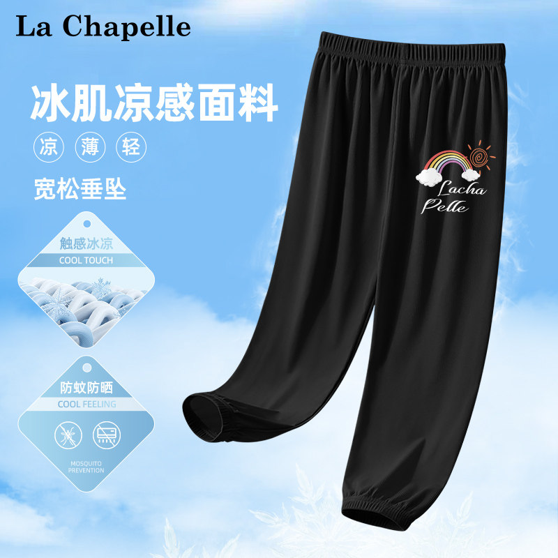 拉夏贝尔女童冰丝裤夏季儿童薄款睡裤2025新款女孩夏天透气防蚊裤