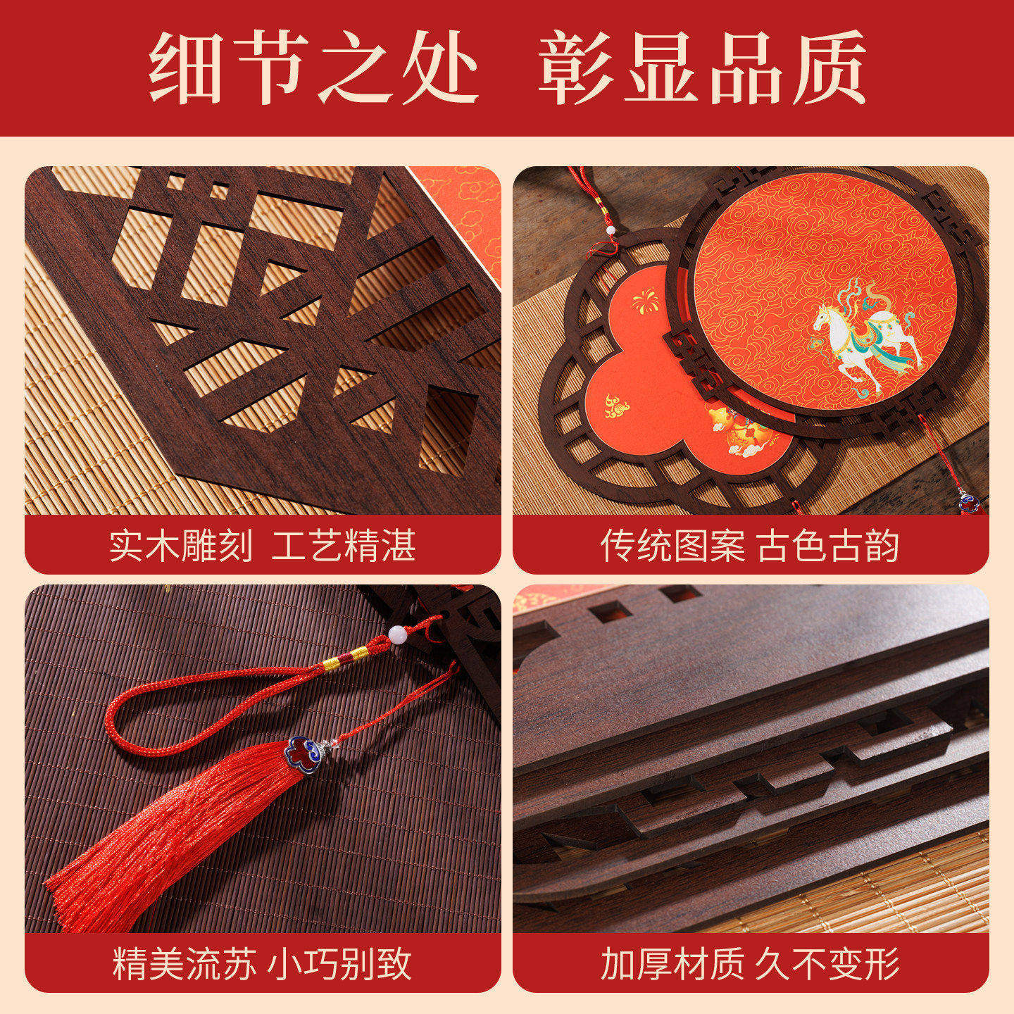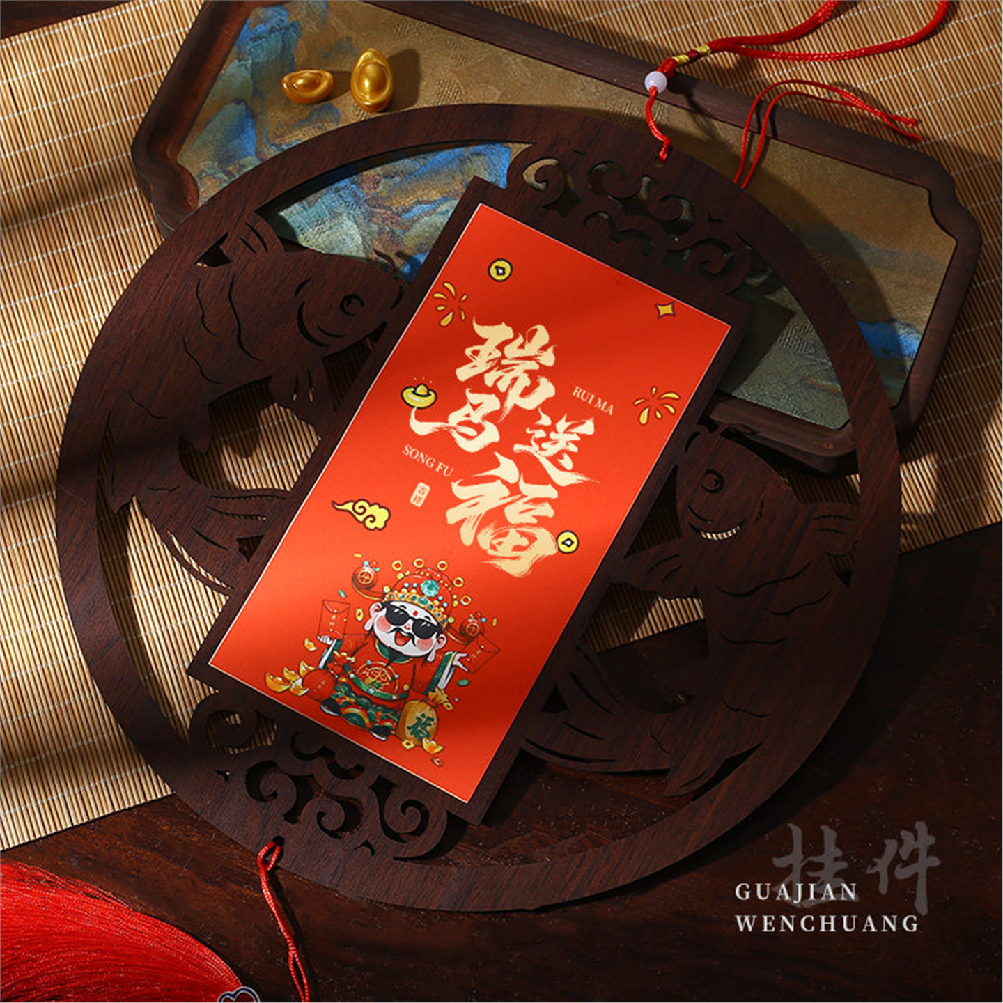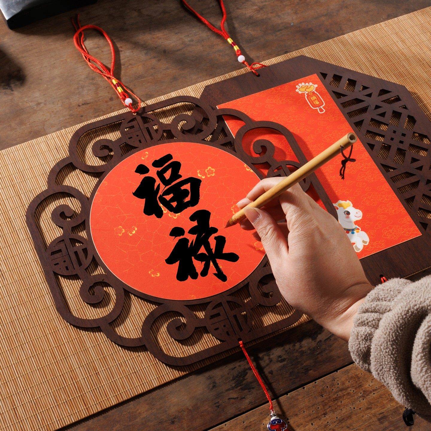 2026年木质镂空挂件双面万年红宣纸斗方挂件新年福卡福字纸空白春节摆件挂饰手写福字书法作品纸硬卡加厚卡纸