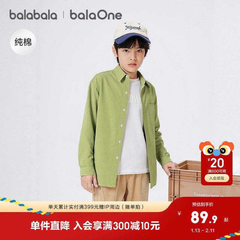 巴拉巴拉童装儿童衬衫长袖男童2025新款秋全棉磨毛宽松亲肤亲子装