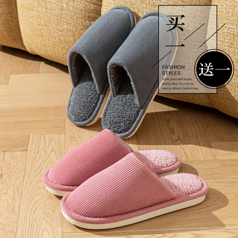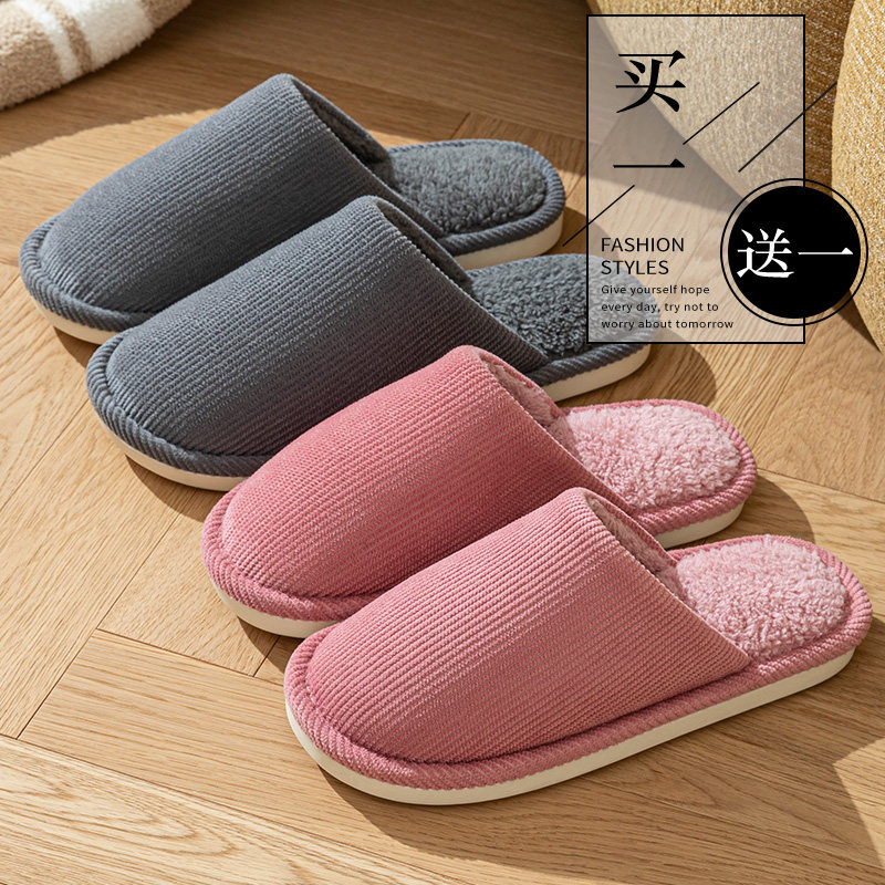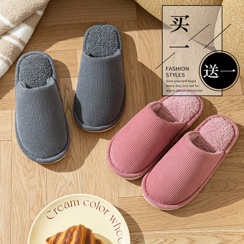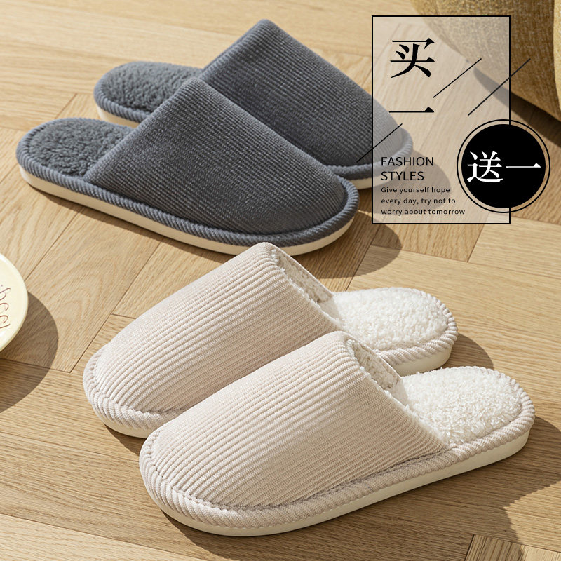 买一送一居家静音防滑棉拖鞋女款秋冬季室内家居软底情侣拖鞋男士