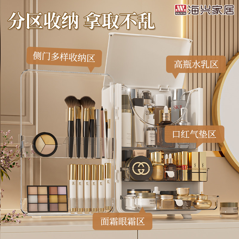 化妆品收纳盒大容量防尘桌面口红护肤品梳妆台化妆刷化妆箱带盖