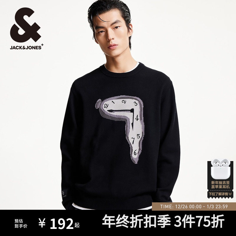 杰克琼斯男装DALI联名款秋冬个性提花罗纹圆领潮流直筒毛衣针织衫