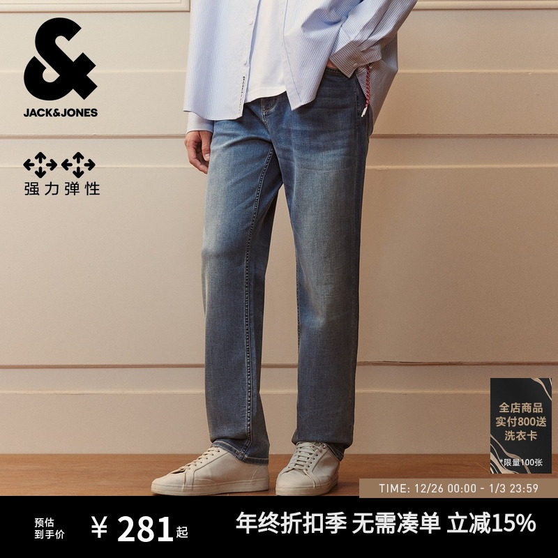 [高弹]903杰克琼斯男装秋复古中蓝水洗宽松直筒牛仔裤男款长裤子