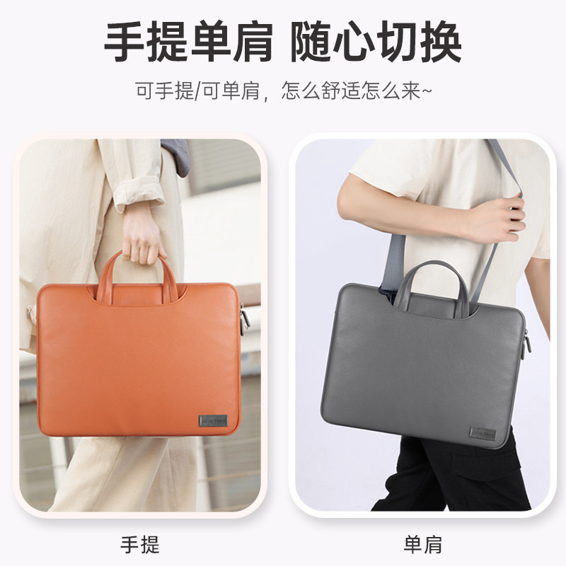 2024新款笔记本电脑手提包适用于苹果MacBookair13皮革公文包华为matebook14寸商务通勤单肩包联想小新 pro15