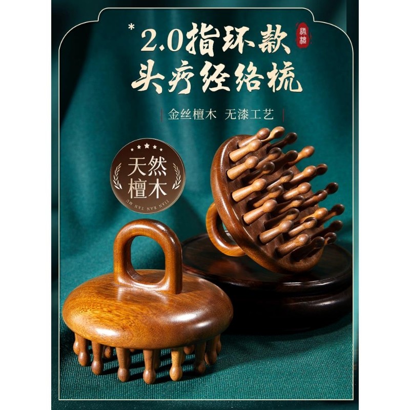 指环按摩檀木梳子天然圆盘头皮头部经络疏通毛囊神器头疗工具刮痧