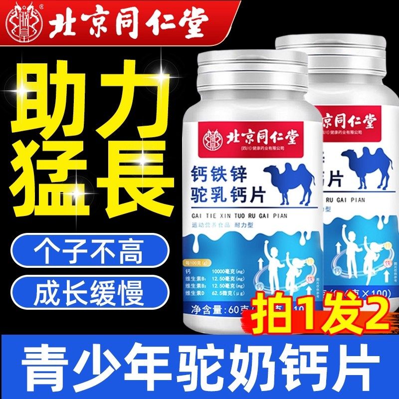 北京同仁堂钙铁锌驼奶钙片儿童青少年补钙补铁补锌成长营养补充