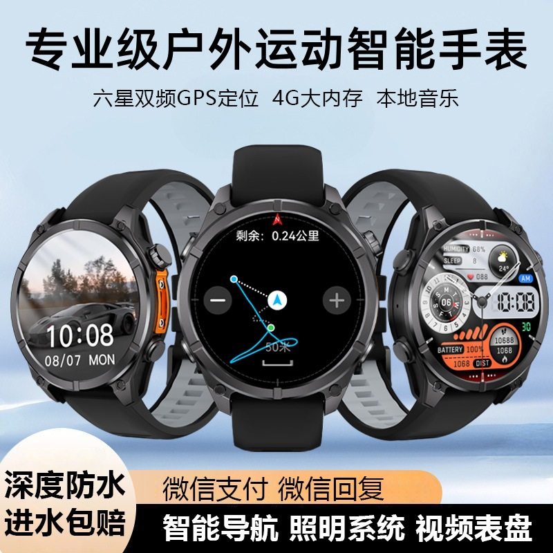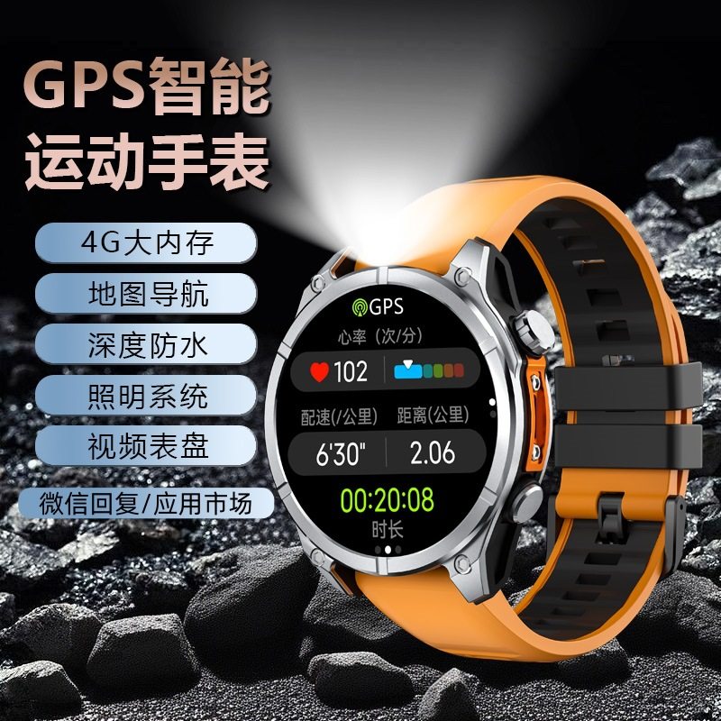 鼎幻【深度防水】智能手表4G内存多功能定位手电筒微信回复支付HD400