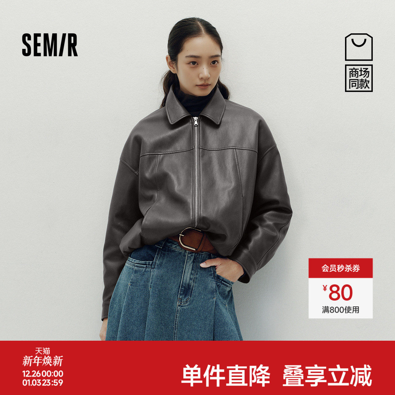 [商场同款]森马外套女PU仿皮设计感秋季2025新款翻领宽松花苞夹克