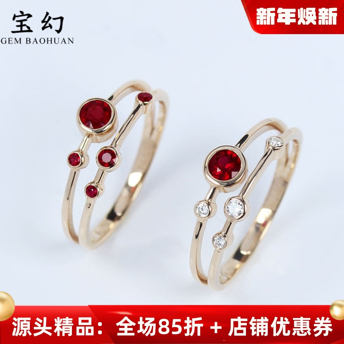 18K玫瑰金天然鸽血红宝石星球行星戒指 彩金包镶钻石双层分叉女款